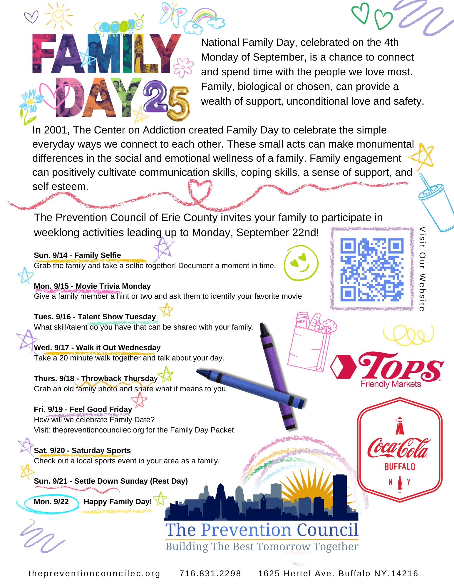 We encourage you to to post pictures of your National Family Day activities! Be sure to share the fun and tag The Prevention Council in your posts!